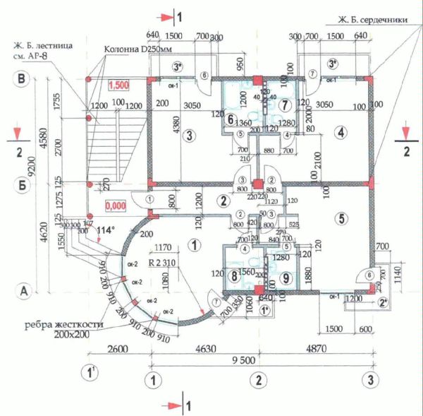 Фундаменты - монолитная железобетонная плита. Конструкция здания - монолитный железобетонный каркас с монолитными железобетонными перекрытиями со скрытыми балками по осям колон. Наружные и внутренние стены - монолитные ж/бетонные, выше из мелкоштучных блоков. Толщина наружных стен 200 мм. Наружные ограждающие стены выполняются с применением эффективного утеплителя, с последующей штукатуркой и покраской декоративной штукатуркой "Бавалит". Кровля - профнастил. Окна - металлопластик. Отопление индивидуальное.